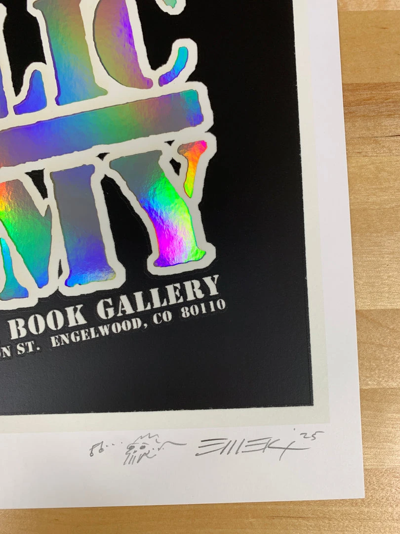 Type: Two piece print. Limited edition laser cut screen printed poster and a holographic foil screen printed poster.