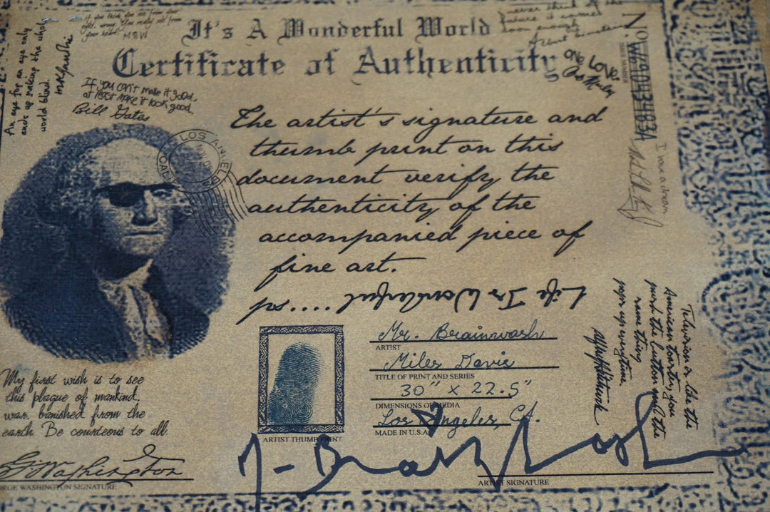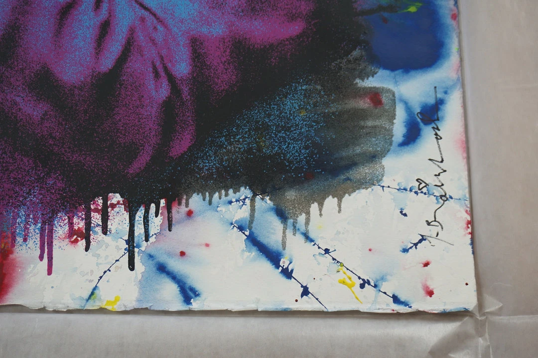 Miles Davis by the famous Mr. Brainwash is a six color screen print hand finished on archival paper. Purchased directly from the artist, this print is hand signed with a COA. This poster measures 30×22.5 inches on hand torn archival art paper with a thumb print on back.