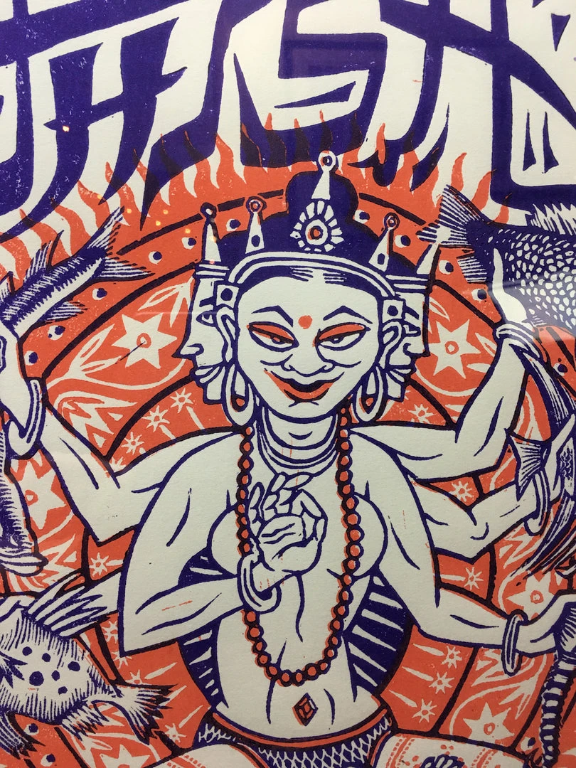 Type: Limited edition linocut poster on recycled paper, signed and numbered out of 500 printed. Ultra rare poster! Framed using archival framing materials, will ship framed.